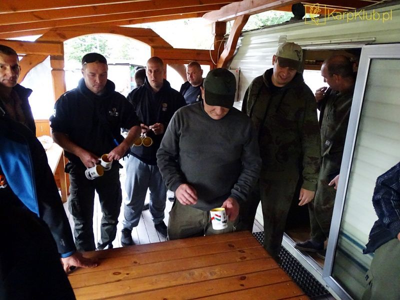 Przed losowaniem każdy z uczestników został poczęstowany pysznym swojskim żurkiem. Po godzinie 14 i uroczystym powitaniu wszystkich uczestników przez organizatora nastąpiło losowanie. Po nim zawodnicy rozjechali się na swoje stanowiska. My wylosowaliśmy stanowisko nr 9 naprzeciw pierwszej wyspy. Niestety zawody rządzą się swoimi prawami i tak jak większość drużyn nie zanotowaliśmy żadnej ryby. Być może wysokie ciśnienie i zmienne warunki atmosferyczne były tego powodem, ale nie ma się co tłumaczyć. Kilka drużyn jednak złowiło komplet 4 ryb. Tak wyglądała pierwsza trójka i Big Fish.