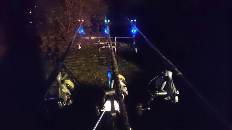 Pozostaje nam do omówienia rolka, która jest bardzo czuła za sprawą większej ilości magnesów, a dodatkowo jest także podświetlana. Samo wędzisko opieramy na dwóch miękkich antypoślizgowych gumach zabezpieczających przed zsunięciem się nawet przy ekstremalnych ustawieniach np. sky poda. Ciekawym dodatkiem jest również komplet snag barow o dł. 43mm z diodą sygnalizującą na końcu, która jest ciekawym pomysłem, bo nie tylko stanowi ochronę przed nagłym szarpnięciem i w efekcie zsunięciem wędki z sygnalizatora, ale również jest dobrze widoczna podczas nocnej wywózki brania itd.